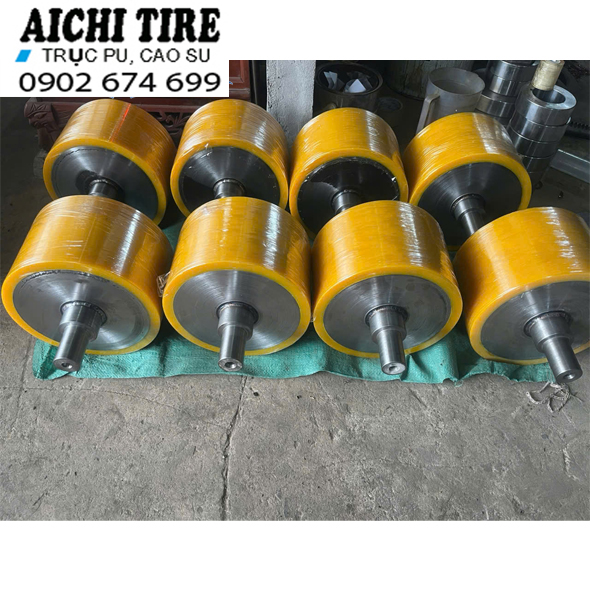 - Giảm Tiếng Ồn Và Rung Động: Lớp PU hấp thụ sốc và rung động tốt, giúp quá trình xoay phôi êm ái hơn, giảm tiếng ồn đáng kể trong nhà xưởng, tạo môi trường làm việc thoải mái hơn.